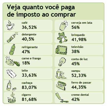 Veja a tabela com os impostos em diversos produtos que compramos: